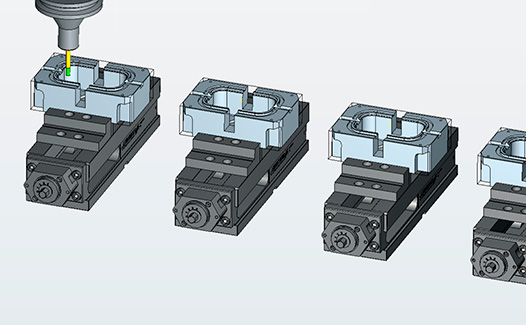 The Multi Part Machining enables the quick programming of workpieces on different origins. Thereby the part is programmed only once and can be duplicated afterwards. The parts are machined with workpiece or with tool change optimization.